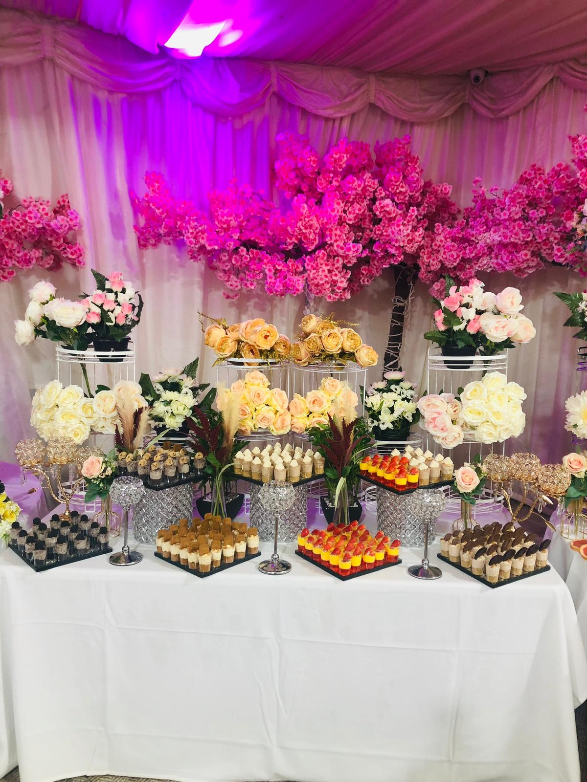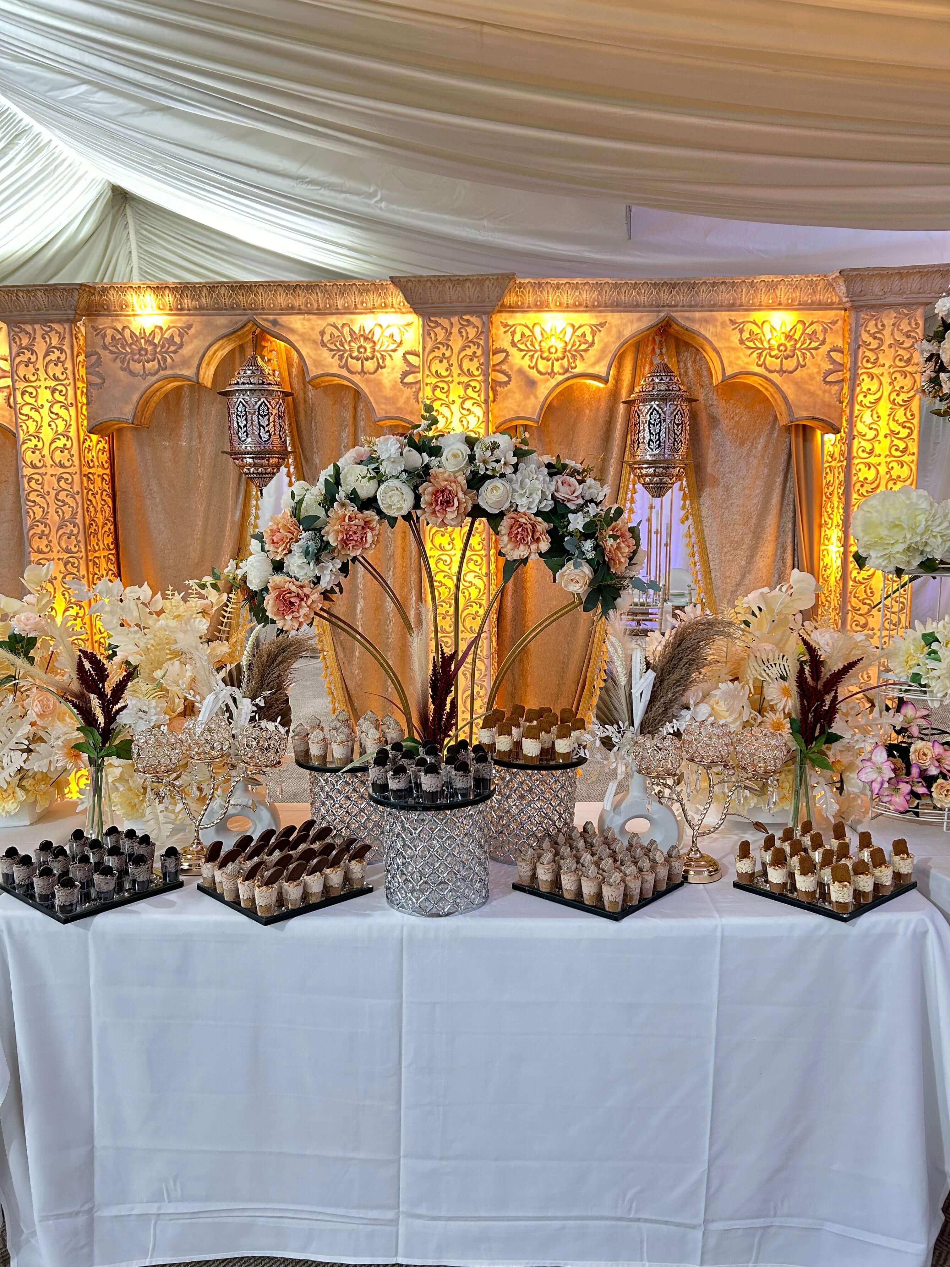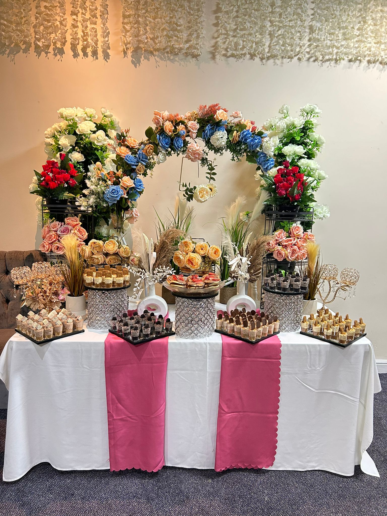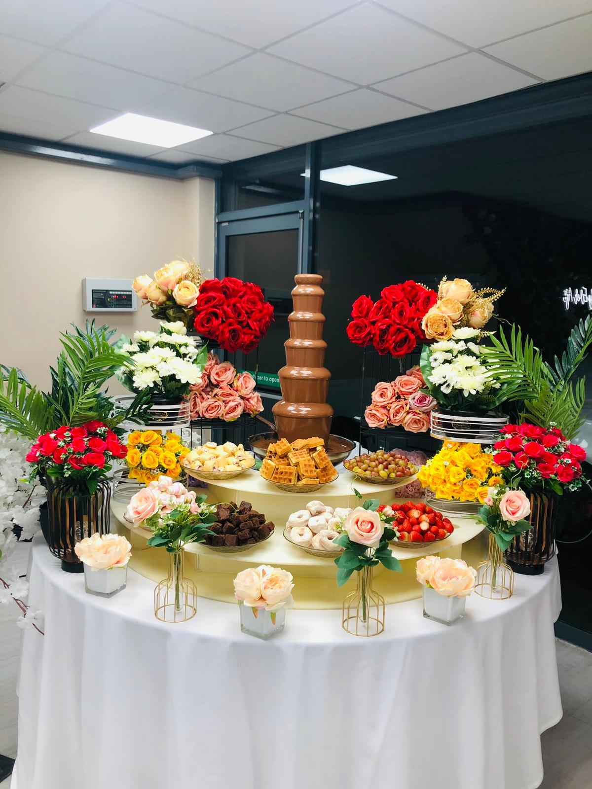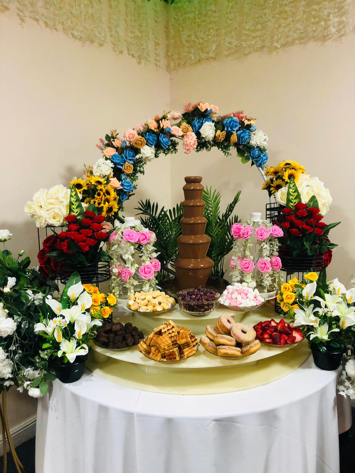We bring a full spectrum of offerings to each event, starting with our beautifully crafted fruit tables and indulgent chocolate fountains. Whether combined for a touch of elegance or featured separately, these elements are sure to impress. Our dessert and candy tables are filled with sweet treats, while our savory selections, including Gol Gappay, Papri Chat, and Samosa Chat, add a flavorful twist. Elegant fruit platters, refreshing mocktail drinks, and bespoke cakes complete our suite of services, catering to every aspect of your celebration and ensuring a memorable experience for every guest.